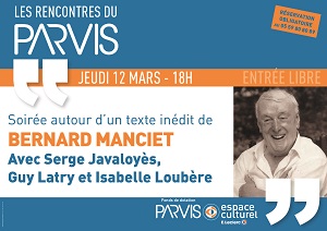 RENCONTRE AUTOUR DE BERNARD MANCIET 12/03/2026 | 18 h 00 Rencontre autour du poème inédit la Tentation de saint Antoine, avec trois connaisseurs de l’œuvre de Bernard Manciet : Guy Latry, qui a établi le texte et dirigé l’édition, nous ouvrira les portes de ce grand poème. Serge Javaloyès, écrivain et poète, évoquera Bernard Manciet et sa lecture du poème. La comédienne Isabelle Loubère, qui se consacre particulièrement à la diffusion de l’œuvre de Bernard Manciet, en lira de larges extraits. Entrée libre, réservation : 05 59 80 80 89 | parvisespaceculturel@gmail.com ▸ Parvis culturel, C.C. Leclerc Tempo, avenue Louis-Sallenave, 64000 Pau |