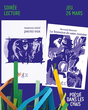 RENCONTRE MAXENCE AMIEL, THIERRY CHAUVEAU 26/03/2026 | 18 h 30 Carte blanche à L’herbe qui tremble avec Maxence Amiel pour son recueil Parmi eux et Thierry Chauveau qui présentera la Tentation de saint Antoine de Bernard Manciet. ▸ Librairie L’Escapade, 6 place de la Cathédrale, 64400 Oloron-Sainte-Marie |